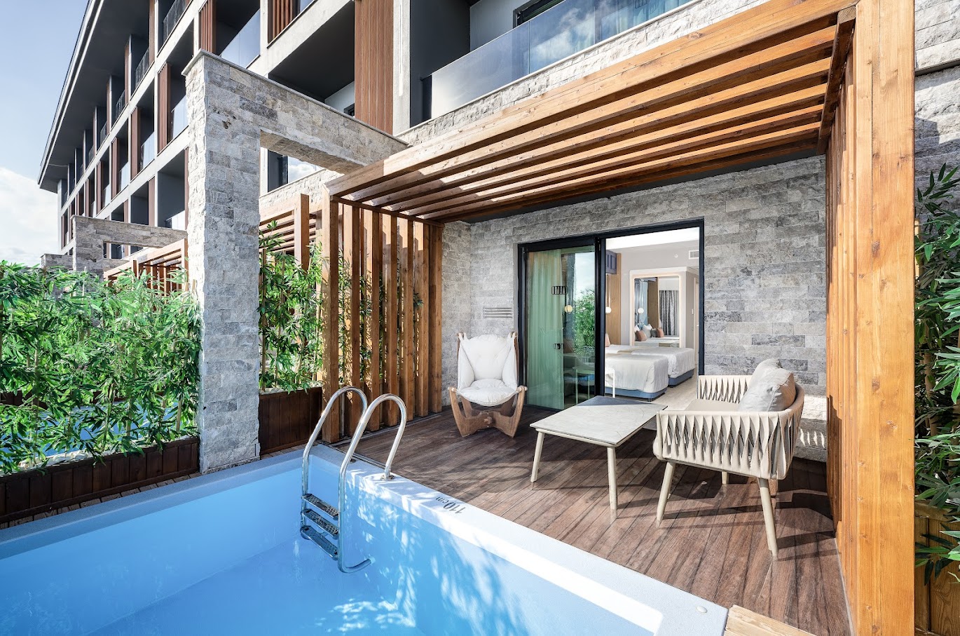 Из номера есть выход к собственному бассейну (без подогрева).